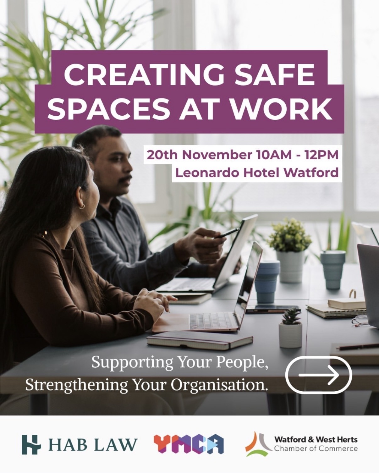 Join us for a collaborative networking event hosted by the Watford & West Herts Chamber of Commerce, HAB Law and One YMCA, designed for organisations that want to build healthier, safer, and more supportive workplaces.